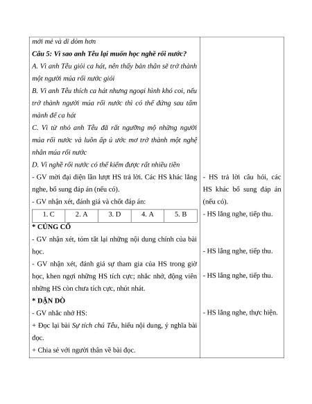 - Đọc được bài đọc trong nhóm và trước lớp. mẫu, đọc thầm theo.