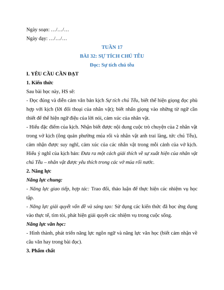 Ngày soạn: …/…/… Ngày dạy: …/…/… TUẦN 17