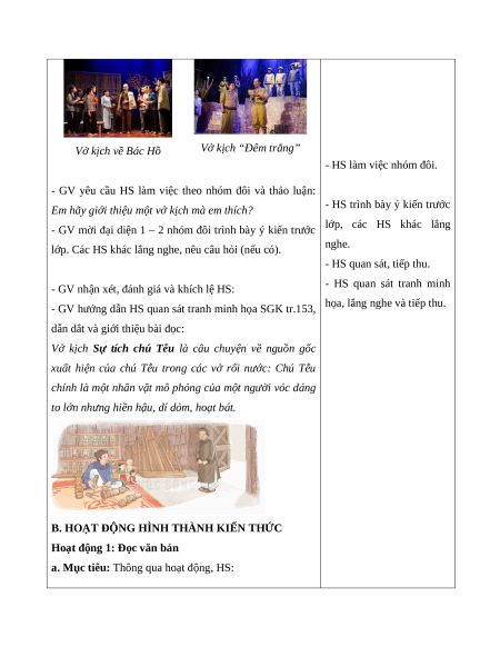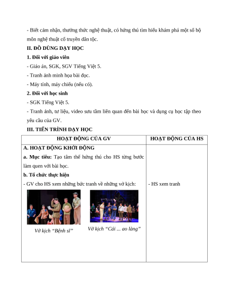- GV cho HS xem những bức tranh về những vở kịch: - HS xem tranh