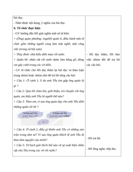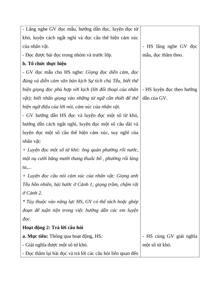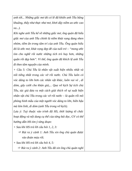 - Hiểu đặc điểm của kịch. Nhận biết được nội dung cuộc trò chuyện của 2 nhân vật
