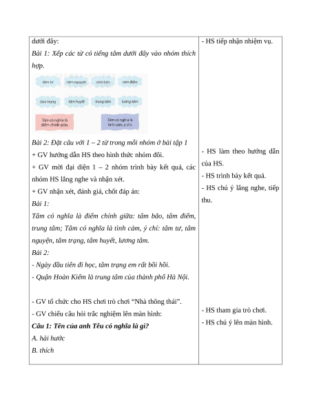 * Tùy thuộc vào năng lực HS, GV có thể tách hoặc ghép