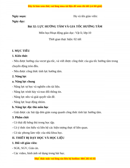 - Giải được các bài tập đơn giản xung quanh công thức tính lực hướng tâm. 3. Phẩm chất