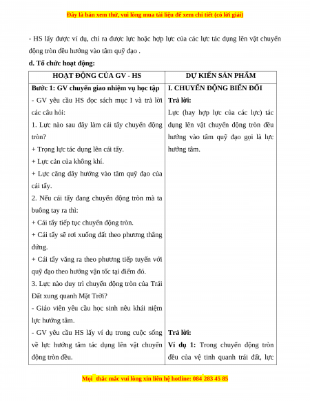 Hoạt động 1. LỰC HƯỚNG TÂM.