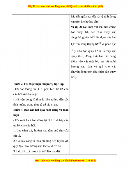 => Trong các ví dụ này, các lực hay hợp lực đóng vai trò lực hướng tâm giữ cho vật