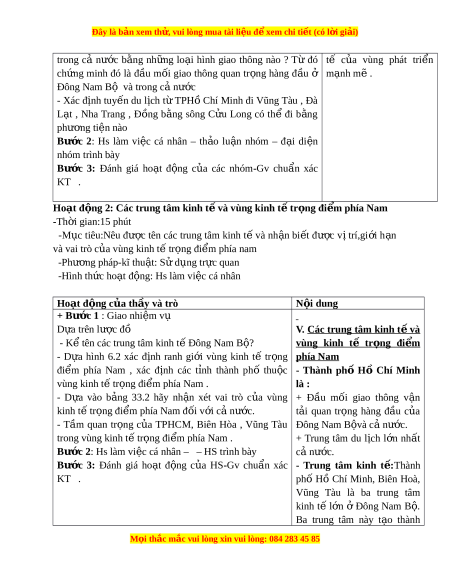 ợ tên các trung tâm kinh t ế và nh n ậ bi t ế đư c ợ v ịtrí,gi i ớ h n ạ và vai trò c a ủ vùng kinh tế tr ng đi ọ m ể phía nam -Phư ng pháp- ơ kĩ thu t ậ : S d ử ng t ụ r c quan ự -Hình th c ho ứ t ạ đ ng: ộ Hs làm vi c cá ệ nhân Hoạt đ ng c ộ a t ủ h y và t ầ rò N i ộ dung + Bư c ớ 1 : Giao nhi m ệ vụ D a ự trên lư c ợ đồ