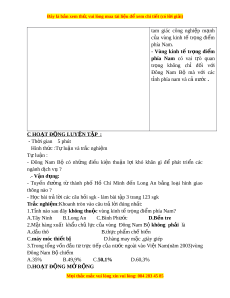 ả đồ vùng Đông Nam Bộ - B n ả đồ giao thông Vi t ệ Nam - At1lat Đ a l ị í Vi t ệ Nam . 2. H c ọ sinh : - Sách giáo khoa ,t p ậ Atla Đ a l ị í Vi t ệ Nam. III. T ch ổ ức hoạt đ ng d ộ y và h ạ c ọ 1. n d Ổ nh t ị ch ổ c: ứ (1 phút ) 2.Ki m ể tra bài cu (5phut) -Tình hình s n ả xu t ấ công nghi p