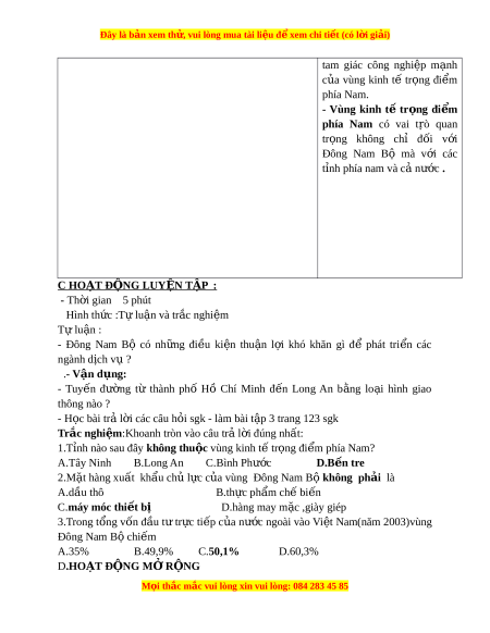 Đây là bản xem th , vu ử i lòng mua tài li u ệ đ xe ể m chi ti t (c ế ó l i ờ gi i ả ) tam giác công nghi p ệ m nh ạ c a ủ vùng kinh tế tr ng ọ đi m ể phía Nam. - Vùng kinh tế tr ng ọ đi m ể phía Nam có vai t ò r quan tr ng ọ không chỉ đ i ố v i ớ Đông Nam Bộ mà v i ớ các