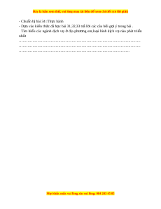 - D a vào ki n th c đã h c bài 31,32,33 tr l i các câu h i g i ý trong bài .ự ế ứ ọ ả ờ ỏ ợ