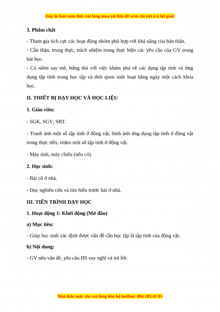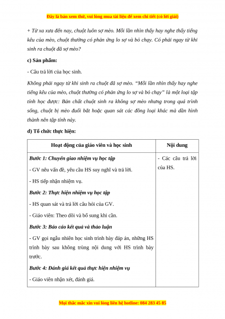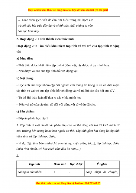 - Giúp học sinh xác định được vấn đề cần học tập là tập tính của động vật. b) Nội dung: