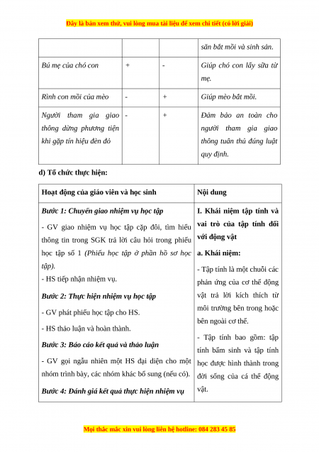 - Nhận biết khoa học tự nhiên: Phát biểu được khái niệm tập tính ở động vật.