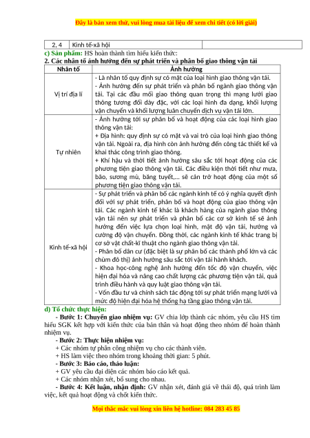 2. Các nhân tố ảnh hưởng đến sự phát triển và phân bố giao thông vận tải