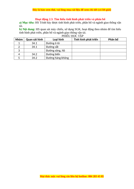 - Trình bày được tình hình phát triển, phân bố và ngành giao thông vận tải.