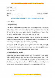 - Nhận thức khoa học tự nhiên: Phát biểu được khái niệm sinh trưởng và phát