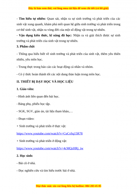 - Thông qua hiểu biết về sinh trưởng và phát triển của sinh vật, thêm yêu thiên nhiên, yêu môn học.