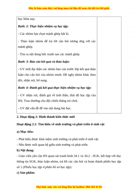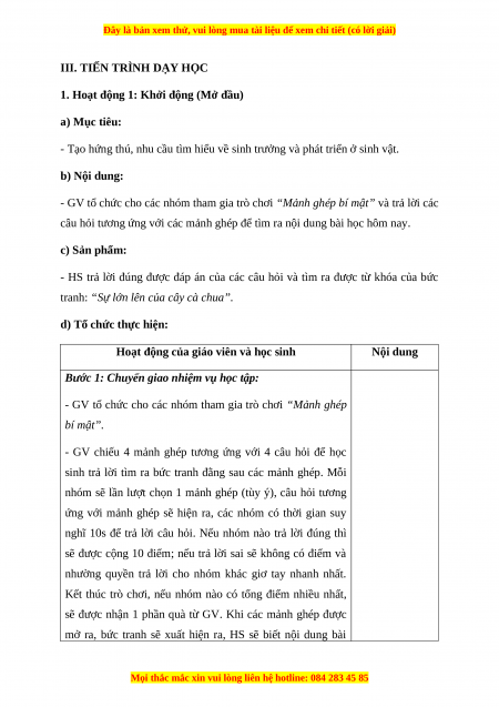 - Tạo hứng thú, nhu cầu tìm hiểu về sinh trưởng và phát triển ở sinh vật. b) Nội dung: