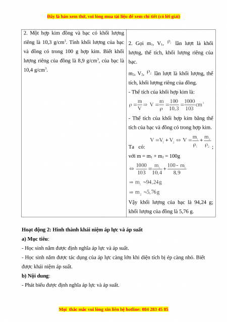 lượng riêng của đồng là 8,9 g/cm3, của bạc là bạc. 10,4 g/cm3. m2, V2,