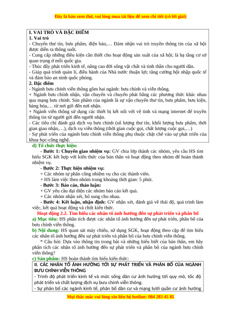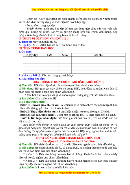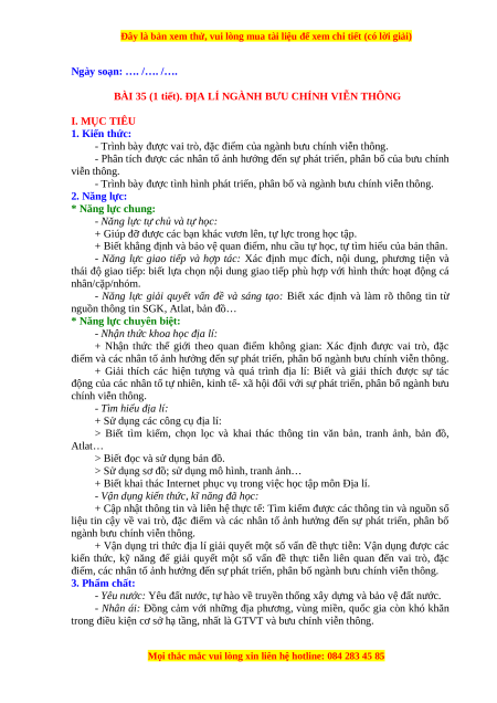 - Trình bày được tình hình phát triển, phân bố và ngành bưu chính viễn thông. 2. Năng lực: * Năng lực chung: