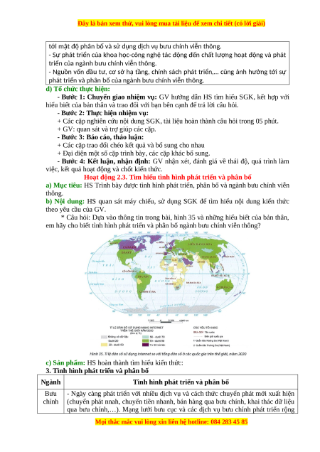 Giáo án Bài 35 Địa lí 10 Chân trời sáng tạo (2024): Địa lí ngành bưu chính viễn thông
