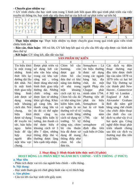 HOẠT ĐỘNG 2.1: PHÂN BIỆT NGÀNH BƯU CHÍNH – VIỄN THÔNG (7 PHÚT)