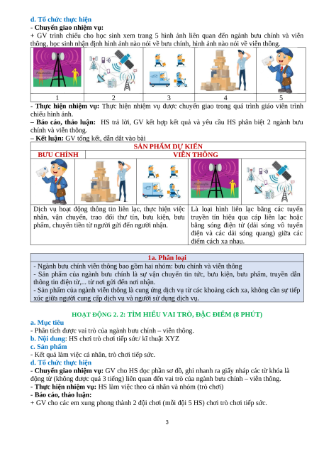 thông, học sinh nhận định hình ảnh nào nói về bưu chính, hình ảnh nào nói về viễn thông.