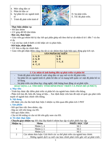 - Phân tích được các nhân tố ảnh hưởng đến sự phát triển và phân bố của ngành bưu chính viễn thông. 2. Về năng lực: - Năng lực chung: