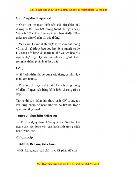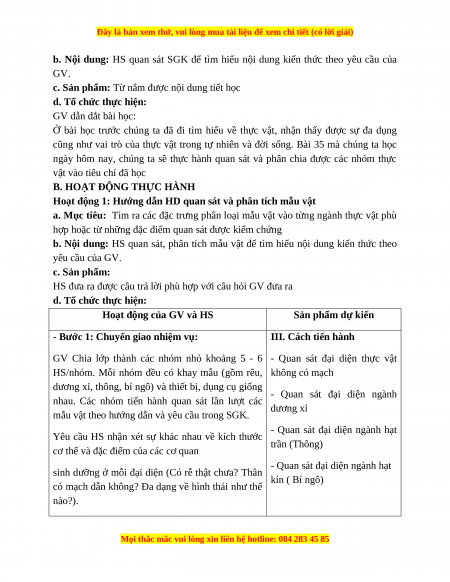 Giáo án Bài 35 KHTN 6 Kết nối tri thức (2024): Thực hành: Quan sát và phân biệt một số nhóm thực vật