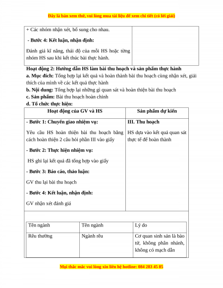 - Bước 1: Chuyển giao nhiệm vụ: III. Thu hoạch
