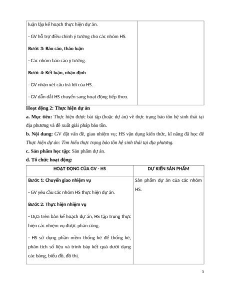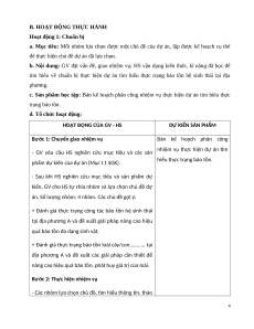 tìm hiểu về chuẩn bị thực hiện dự án tìm hiểu thực trạng bảo tồn hệ sinh thái tại địa phương.