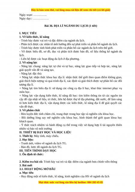 Bài 36. ĐỊA LÍ NGÀNH DU LỊCH (1 tiết) I. MỤC TIÊU