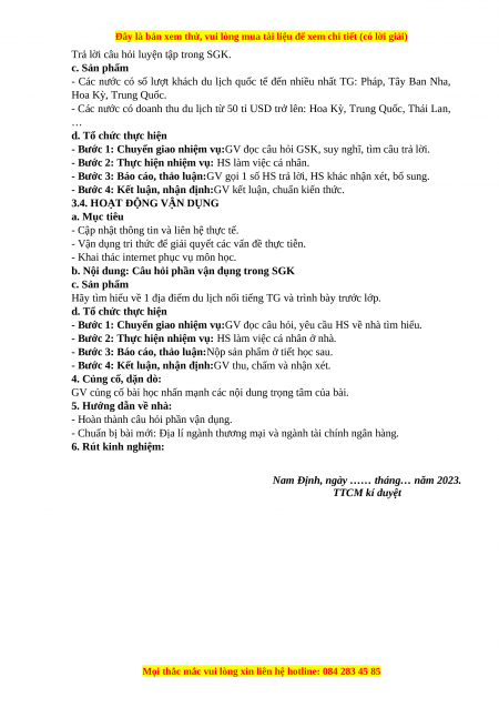 - Liên hệ tình hình phát triển ngành du lịch ở địa phương. b. Nội dung