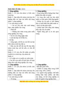 chuẩn bị và trình bày c a nhóm ủ đó. Bư c 4 ớ : + GV nh n ậ xét và chu n xác ki ẩ n t ế h c. ứ + Cho HS xem m t ộ số hình nh ả v ề ho t ạ đ ng ộ s n ả xu t ấ nông nghi p c ệ a vùng. ủ 2. Công nghi p ệ : 2. Công nghi p: ệ Bư c ớ 1 : GV yêu c u ầ nhóm 3,4 b c ố xăm - B t ắ đầu phát tri n. ể trình bày. - Chi m ế tỉ tr ng ọ th p ấ trong GDP Bư c ớ 2 : Đ i ạ di n