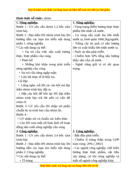 Đây là bản xem th , vu ử i lòng mua tài li u ệ đ xe ể m chi ti t (c ế ó l i ờ gi i ả ) Hình th c t ứ ch ổ c: ứ nhóm 1. Nông nghi p ệ : 1. Nông nghi p: ệ Bư c ớ 1 : GV yêu c u ầ nhóm 1,2 b c ố xăm - Vùng tr ng ọ đi m ể lư ng ơ th c ự th c ự trình bày. ph m ẩ l n ớ nh t ấ cả nư c. ớ Bư c ớ 2 : Đ i ạ di n