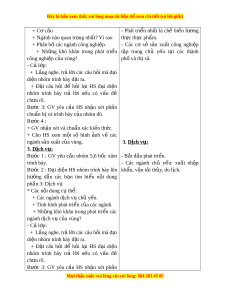 chuẩn bị và trình bày c a nhóm ủ đó. Bư c 4 ớ : + GV nh n ậ xét và chu n xác ki ẩ n t ế h c. ứ + Cho HS xem m t ộ số hình nh ả về các ngành s n xu ả ất c a ủ vùng. 3. D ch v ị : ụ 3. D ch ị v : ụ Bư c ớ 1 : GV yêu c u ầ nhóm 5,6 b c ố xăm - B t ắ đầu phát tri n. ể trình bày. - Các ngành chủ y u: ế xu t ấ nh p ậ Bư c ớ 2 : Đ i ạ di n