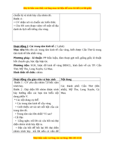 : Tình hình phát tri n ki ể nh t . ế ( 28 phút) Mục tiêu: Bi t ế phân tích số li u ệ th ng ố kê, bi u ể đồ kinh tế để nh n ậ bi t ế và trình bày đ c ặ đi m ể kinh tế c a vùng Đ ủ BSCL. Phư ng ơ pháp – kĩ thu t ậ : PP th o ả lu n, ậ đàm tho i ạ g i ợ m , ở gi ng ả gi i ả ; kĩ thu t ậ h i ỏ chuyên gia, h c t ọ p ậ h p t ợ ác. Phư ng ơ ti n: ệ SGK, b n ả đồ t ự nhiên, b n ả đ ồ kinh t ế vùng ĐBSCL, hình nh ả về các ngành kinh t và đo ế n ạ video v m ề t ộ số đ a danh du l ị ch n ị ổi ti ng ế c a vùng. ủ M i ọ thắc m c