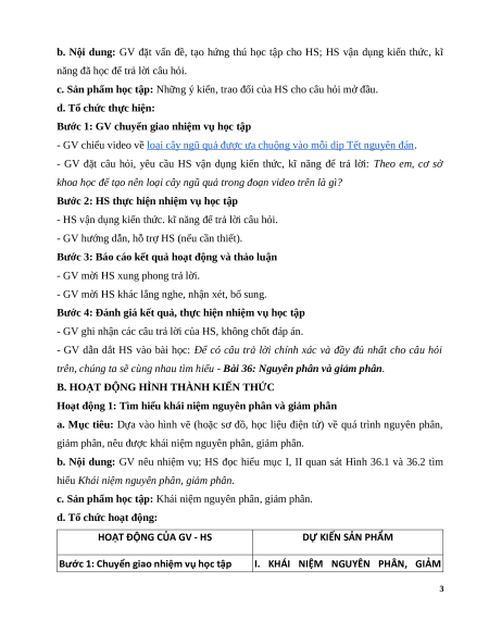 Giáo án Bài 36 Khoa học tự nhiên 9 Cánh diều(2024): Nguyên phân và giảm phân