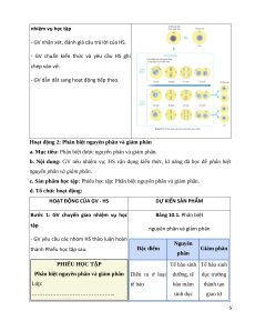 phân, nêu được khái niệm và phân biệt được nguyên phân, giảm phân. Nêu được ý