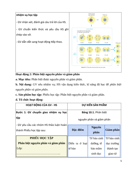 - Nghiên cứu nội dung bài học; nghiên cứu video về nguyên phân và giảm phân GV
