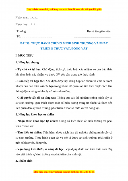 Giáo án Bài 36 Sinh học 7 Chân trời sáng tạo (2024): Thực hành chứng minh sinh trưởng và phát triển ở thực vật, động vật