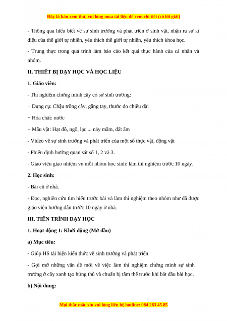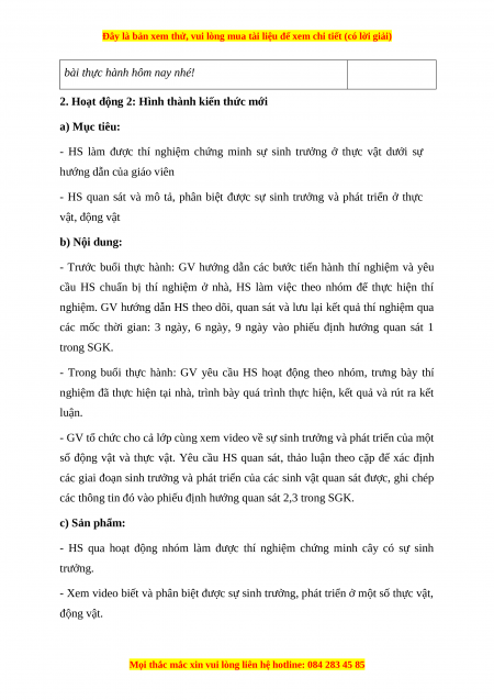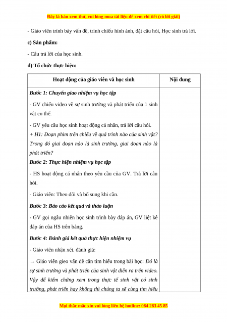 - HS quan sát và mô tả, phân biệt được sự sinh trưởng và phát triển ở thực vật, động vật b) Nội dung: