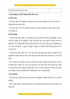- Giáo viên giao nhiệm vụ mỗi nhóm học sinh: làm thí nghiệm trước 10 ngày.