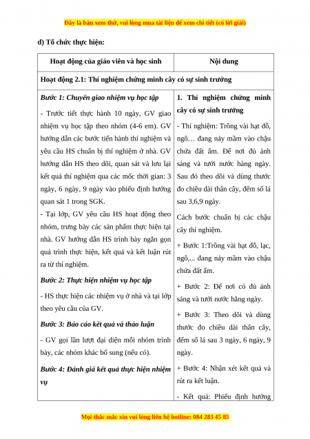 - HS qua hoạt động nhóm làm được thí nghiệm chứng minh cây có sự sinh trưởng.