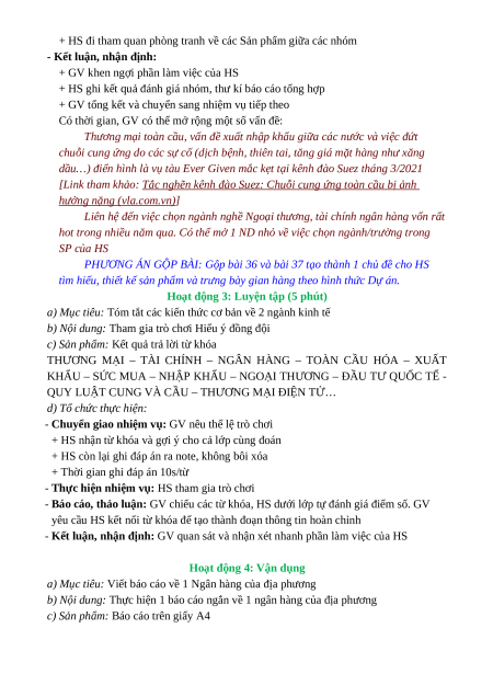 - Liên hệ được các hoạt động ngành thương mại và tài chính ngân hàng của địa phương 2. Năng lực * Năng lực chung:
