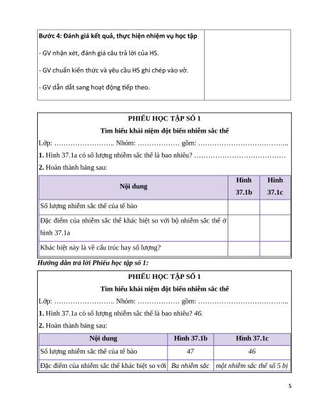 và hoàn thành Phiếu học tập số 1 (Đính kèm dưới hoạt - Đột biến nhiễm sắc thể là động).