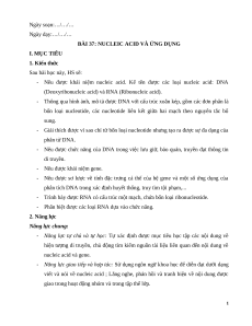 BÀI 37: NUCLEIC ACID VÀ ỨNG DỤNG I. MỤC TIÊU 1. Kiến thức Sau bài học này, HS sẽ: