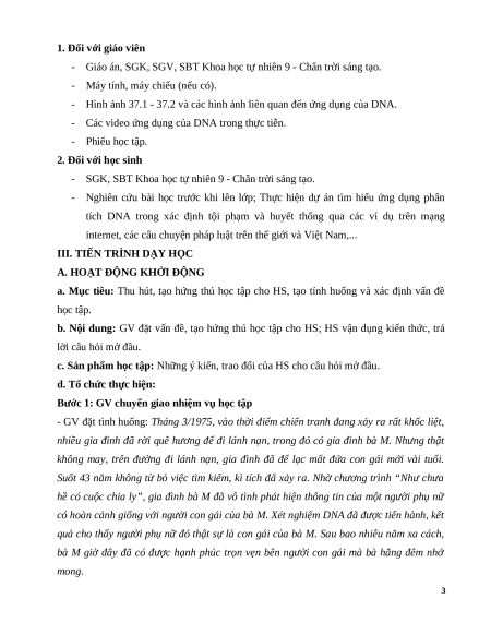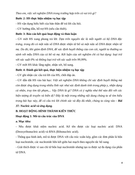 Giáo án Bài 37 KHTN 9 Chân trời sáng tạo (2024): Nucleic acid và ứng dụng