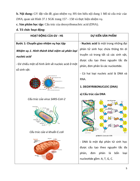 Hoạt động 1: Mô tả cấu trúc của DNA a. Mục tiêu: