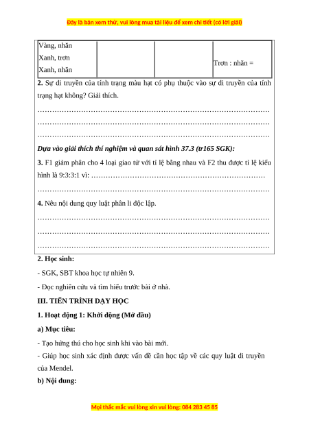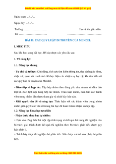 Giáo án Bài 37 KHTN 9 Kết nối tri thức (2024): Các quy luật di truyền của Mendel