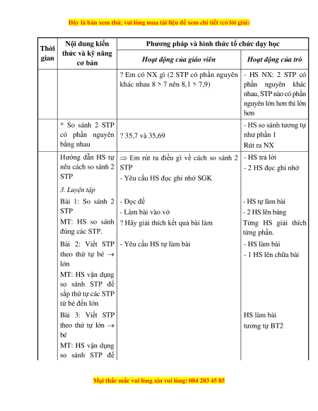 - Biết so sánh 2 STP và biết sắp xếp các STP theo thứ tự từ bé đến lớn hoặc