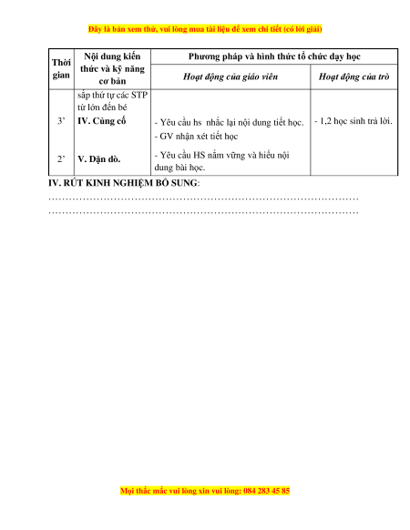 Hoạt động của trò n sắp thứ tự các STP từ lớn đến bé 3’ IV. Củng cố