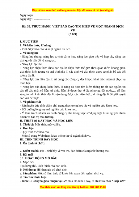 Bài 38. THỰC HÀNH: VIẾT BÁO CÁO TÌM HIỂU VỀ MỘT NGÀNH DỊCH VỤ (2 tiết) I. MỤC TIÊU